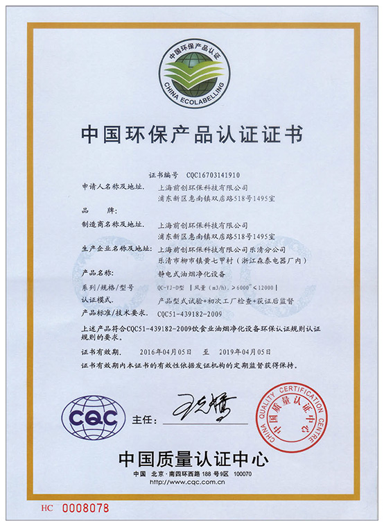 CQC Test Report of Equipment Oil Fume Odor Purifier-3