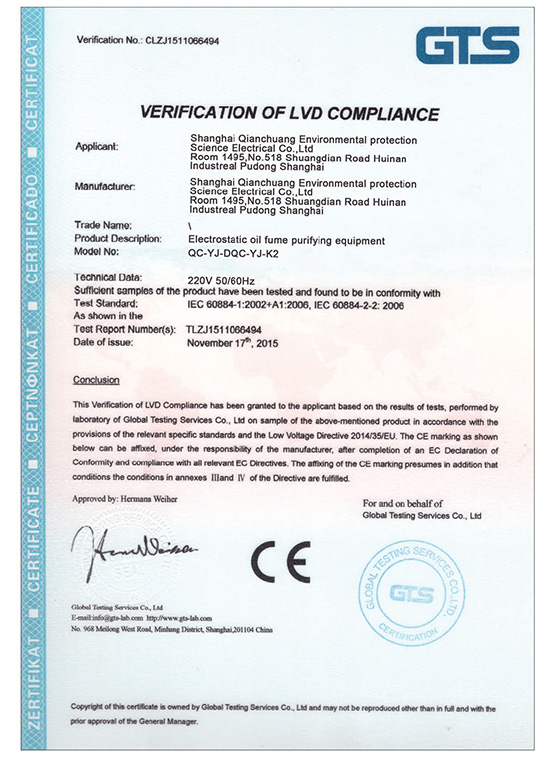 CQC Test Report of Equipment Oil Fume Odor Purifier-2