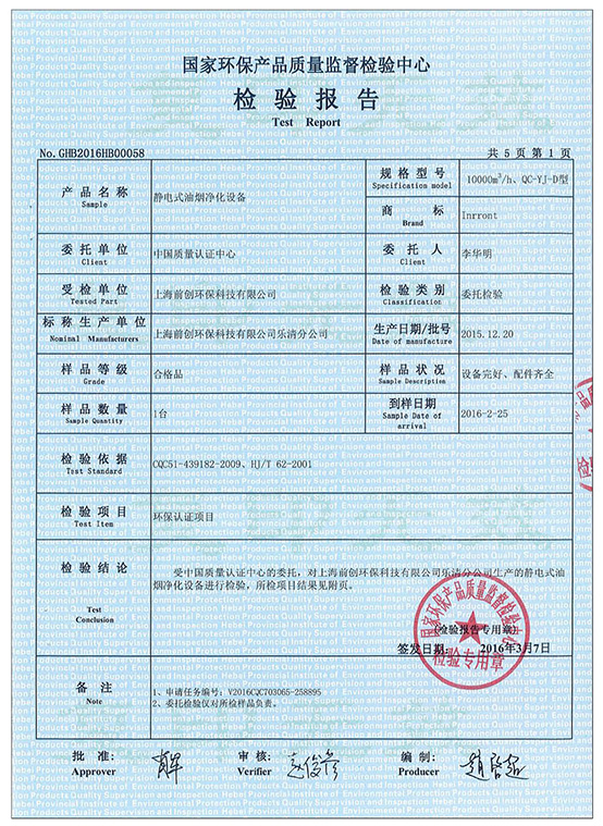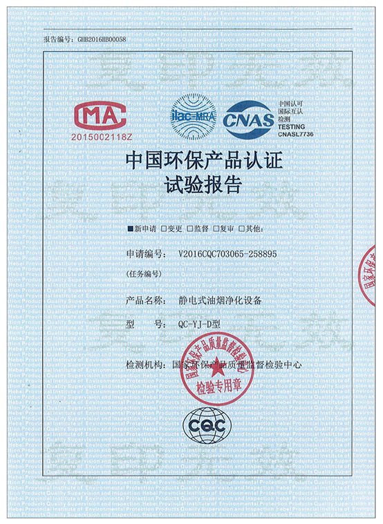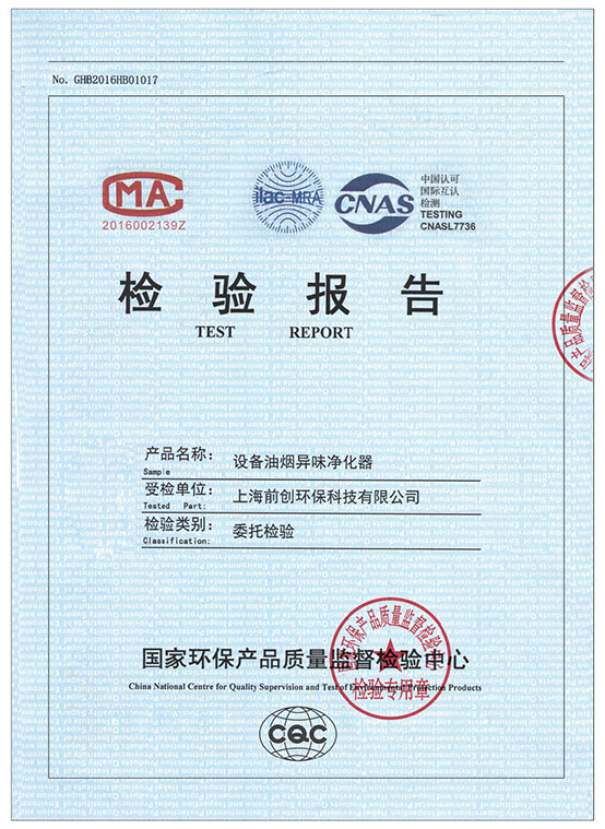 CQC Test Report of Equipment Oil Fume Odor Purifier-1
