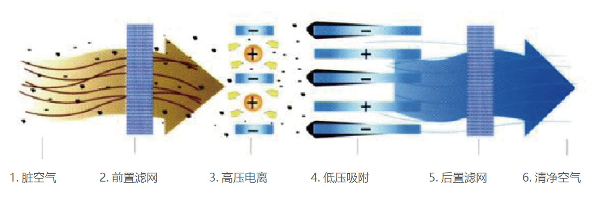 Under the action of electrostatic high-voltage electric field, oil and smoke molecules are decomposed into carbon dioxide by electric charge. A large amount of negative oxygen ions are generated by the electric field to remove most of the odor. The air flows through PM2.5 to filter out clean air.